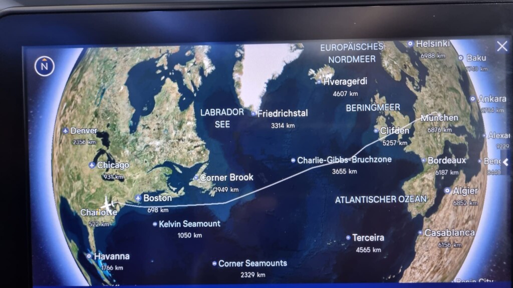 Da der vierte im Bunde die Maschine nach Peter nimmt, haben wir den Snack und Kaffee schon zu uns genommen, aber Christian stößt auch schnell zu uns. Die Zeit läuft, den Junior verabschiedet, der fliegt mit seiner Partnerin nach Bremen, wir vier gehen zum Flugsteig und düsen fast pünktlich unserem Ziel Charlotte in den USA entgegen.