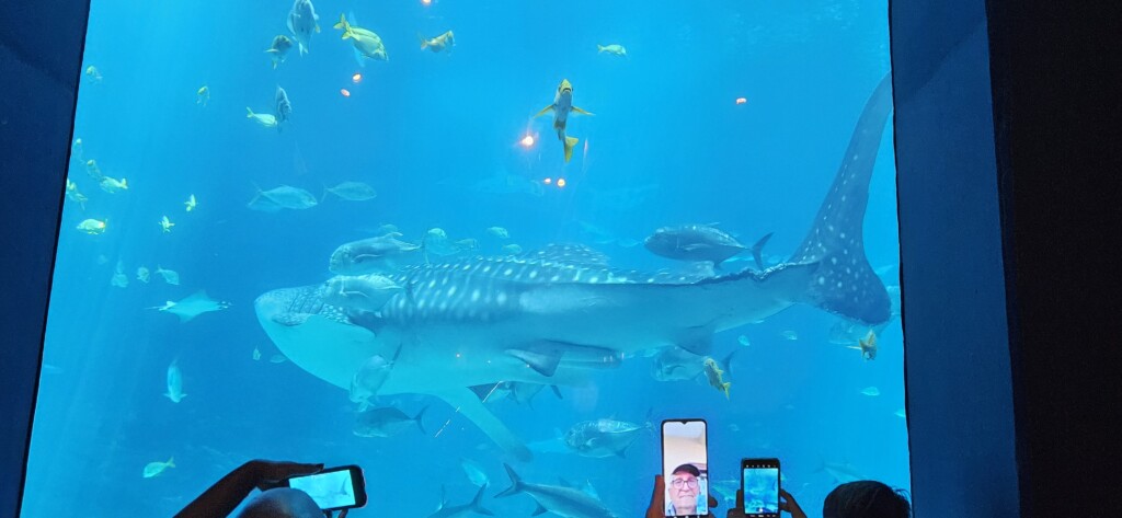 In Atlanta gibt es ein großes Schwimmbad für Fische, kurz Aquarium, genau das wollen wir uns ansehen. Schuhe an und los geht’s, Max, mittlerweile als unser Chauffeur auserkoren, bringt uns auch jetzt wieder sicher durch den Verkehr. Den Parkplatz erreicht ( das Abstellen vom PKW kostet 20 $ und ist damit eigentlich sehr günstig ), war es nur ein kurzer Fußmarsch zum Aquarium. Ticket’s gelöst, die Dame vor dem Eingang kurz erklärt, wir brauchen kein Gruppenfoto ( die Amis wollen wirklich mit allem Geld verdienen ), rein ins Gebäude. Es sieht von außen unscheinbar aus, es ist aber riesig. Im Aquarium selbst gab es sehr viel Wasser, in dem allerlei Fische und Schildkröten unterwegs sind. Es war durchaus schön anzusehen und da die Amis eben auf „Big“ stehen, überrascht es einen auch nicht, dass sie hier den Walhai, immerhin der größte Fisch auf unserem Planeten, rumschwimmen lassen. Die Zeit vergeht, jetzt hatten wir auch schon fast alle Stationen durch, aber die Delphine ( für die Show muss man sich registrieren und die nächsten freien Plätze wären erst 2 Stunden später verfügbar gewesen ) haben wir uns auch nur im vorbeigehen angesehen. Gefolgt von den Krokodilen mit nach meiner Meinung, wirklich hässlich aussehenden Albinokrokos, ging es langsam Richtung Ausgang. Fazit: Der Eintritt erkauft mit 52 $ hat sich gelohnt, war es doch ein riesiges Aquarium mit viel Information zu den einzelnen Kreaturen. …und eine besondere hat der Max mal gleich gekauft und mitgenommen ( siehe Bild ) ![]()