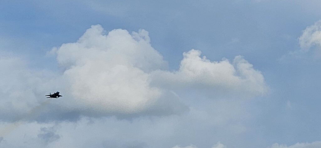 Auf unseren Plätzen, auf Höhe der Start-Ziellinie, haben wir den besten Blick auf die Strecke, aber eben auch auf den Wagen mit den für die Zeremonie genutzten Ausgang aus dem darauf befindlichen Kasten ( kennt man ja aus dem TV ). Danach die klassischen Vorgänge: Gebet, Nationalhymne mit dem obligatorischen Überflug. Lt. Max sollten es zwei Fighter sein, es war dann doch nur einer, wenn auch schön anzusehen. Ob der zweite Fighter am Vortag bei einer Übung abgestürzt ist? Immerhin gab es am Vortag von unseren Plätzen aus gut sichtbar, eine schwarze Rauchsäule zu sehen. Wir werden es wohl nie erfahren![]()