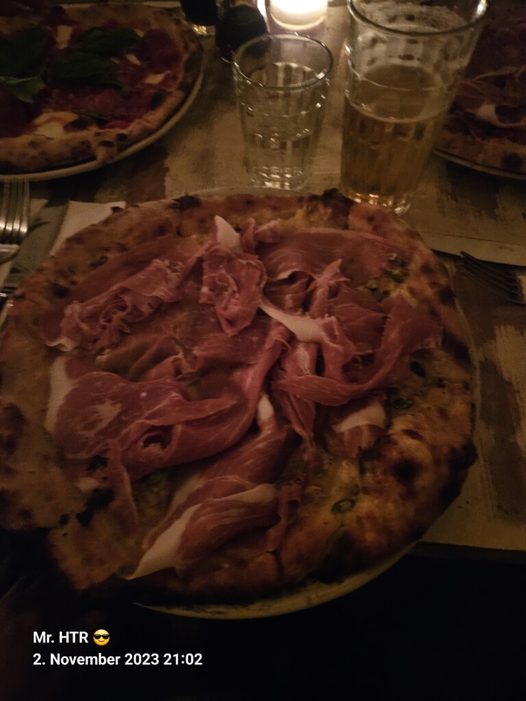 Zurück am Haus ein bisschen Ruhe, wir wollen am Abend noch Essen gehen. Timo hat sich, noch immer leicht angesschlagen, von uns abgemeldet, er braucht Ruhe. Dacia und Eric treffen wir an der Pizzeria, die aber kein Platz mehr für uns bietet. Es gibt aber eine 2. Ausführung ( Pizzeria Bianco ist aus einer Netflix Serie „Chef’s Table“ bekannt ), also schnell ins Auto und hin. Dort bekamen wir einen Tisch und eine leckere Pizza, zwar überteuert ( Netflix sein Dank ), aber sehr lecker.