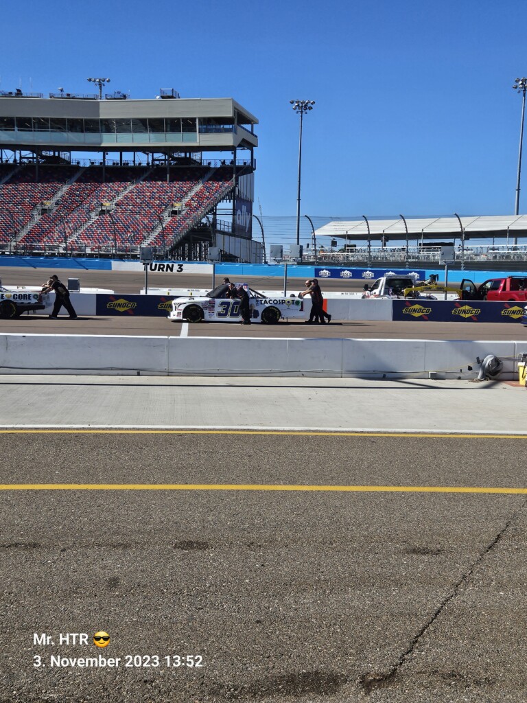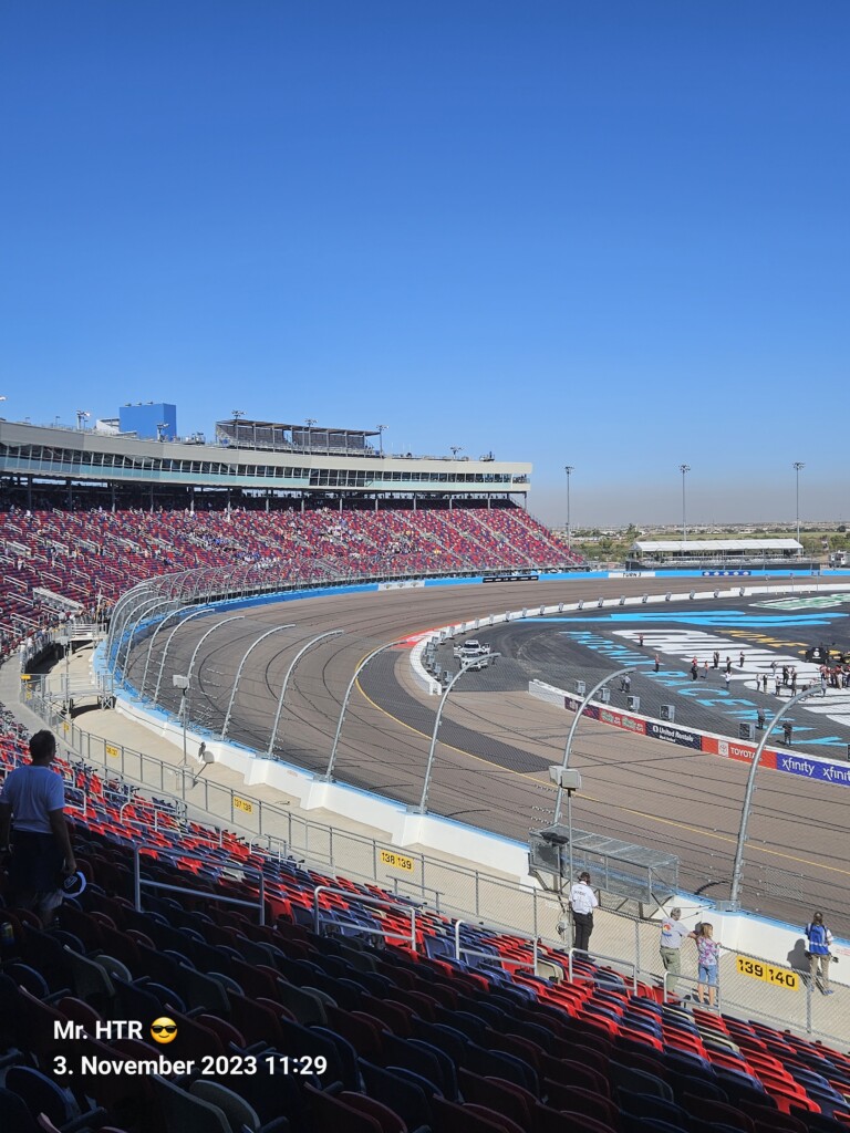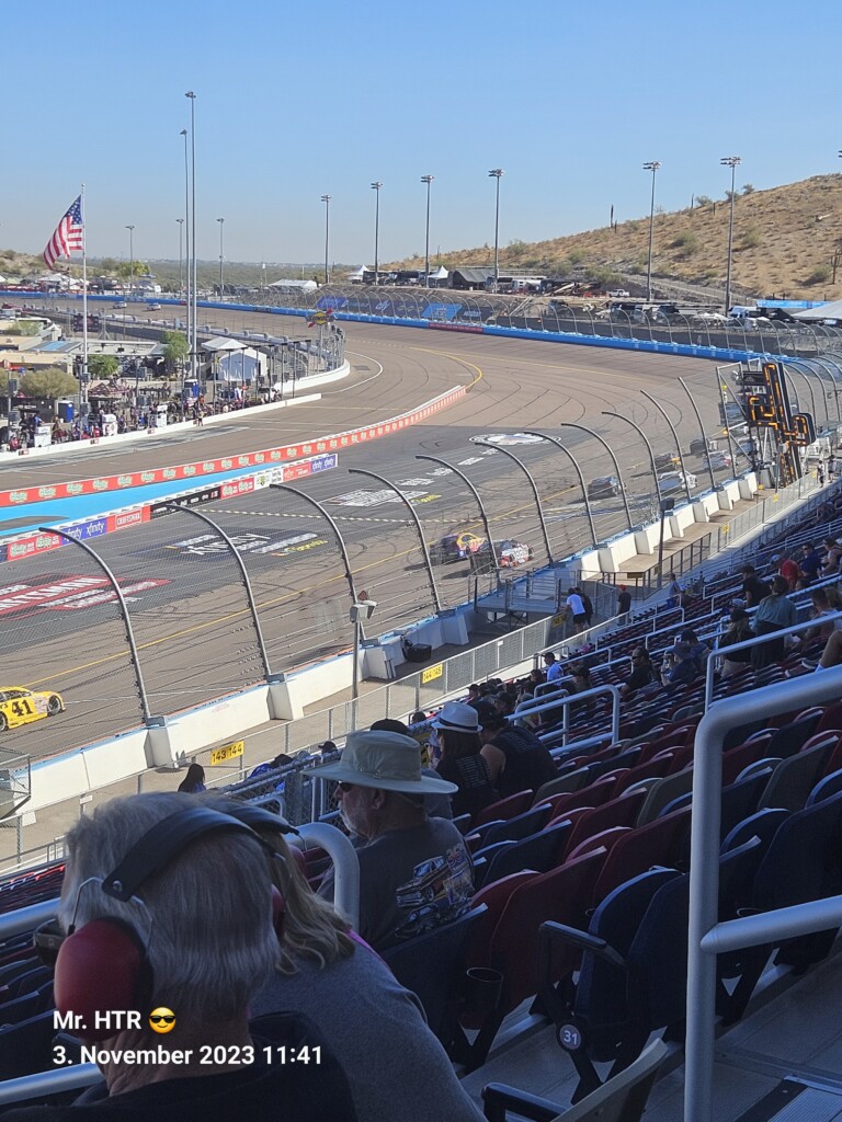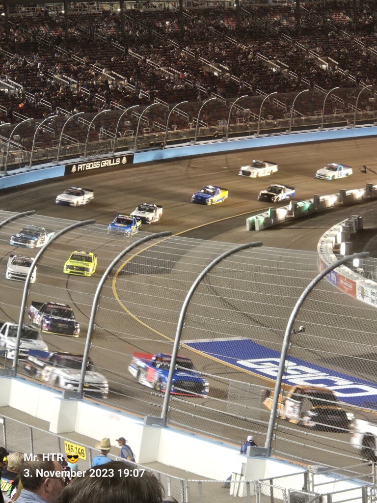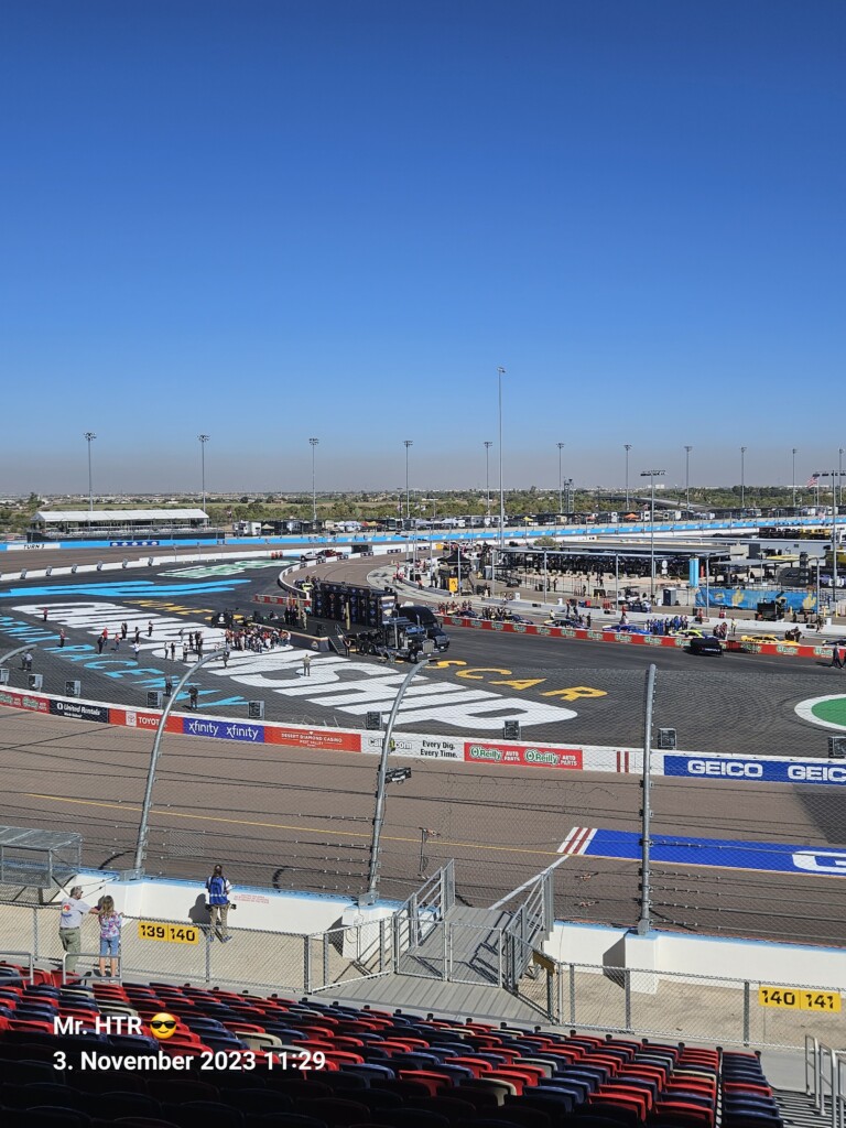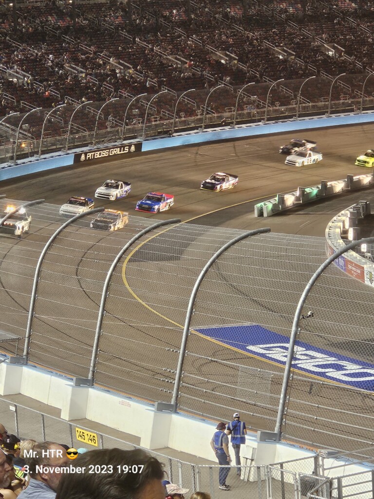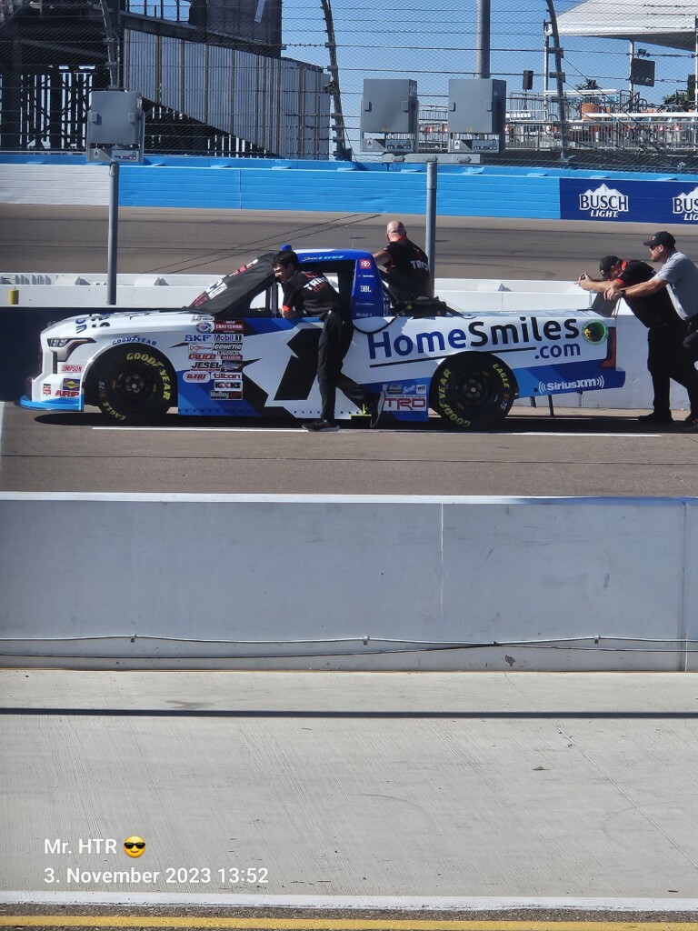 Jetzt gab es eine kleine Pause, die wir genutzt haben um ins Infield zu gehen. Ein Muss, wenn man in Phoenix ist, gelangt man doch so sehr nah an die Autos in den Garagen. Bilder werden gemacht, alles wird aufgesogen. Die Zeit vergeht, auch wir haben wieder Hunger, den wir umgehend stillen. Teuer, aber durchaus genießbar und nötig, brauchen wir doch viel Energie für den Tag. Da die Trucks auf die Bahn geschoben wurden, haben wir uns nach dem Essen auf den Weg zur Tribüne gemacht, das Qualifying der Trucks steht an. Es war spannend, wir freuen uns auf das noch folgende Rennen der Jungs und dem Mädel. Aber erst kommen noch die anderen Klassen, jeweils das Practice der Xfinity und der Bigboys steht vorher an. Beides läuft ohne große Zwischenfälle, auch hier wird die Vorfreude gesteigert auf das, was da in den nächsten zwei Tagen auf uns zukommt.