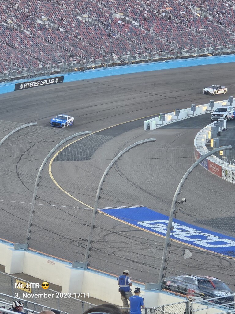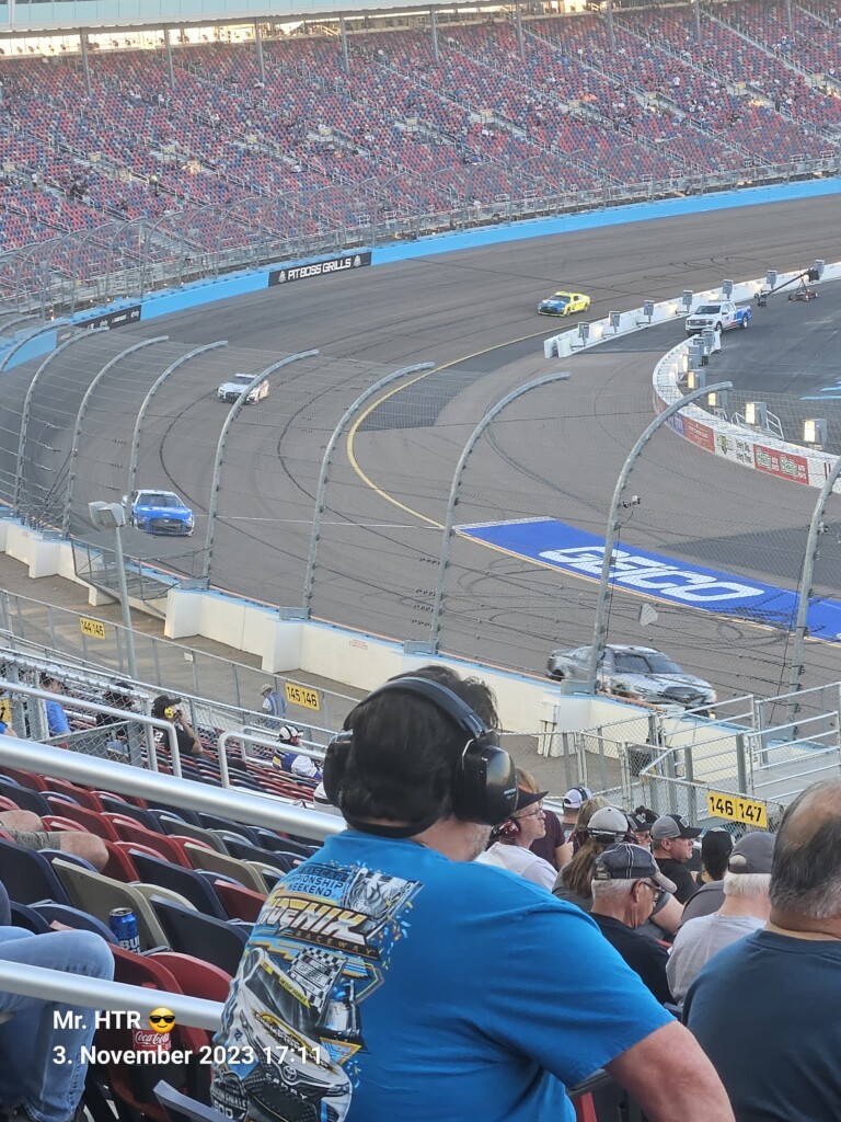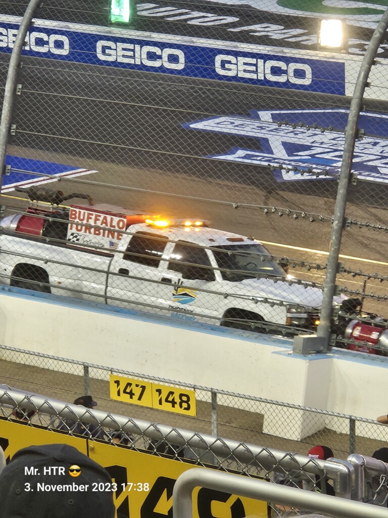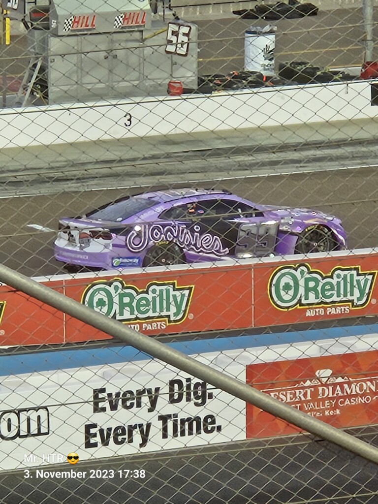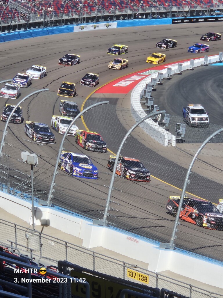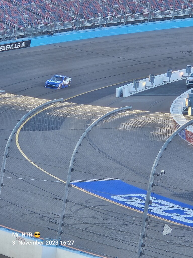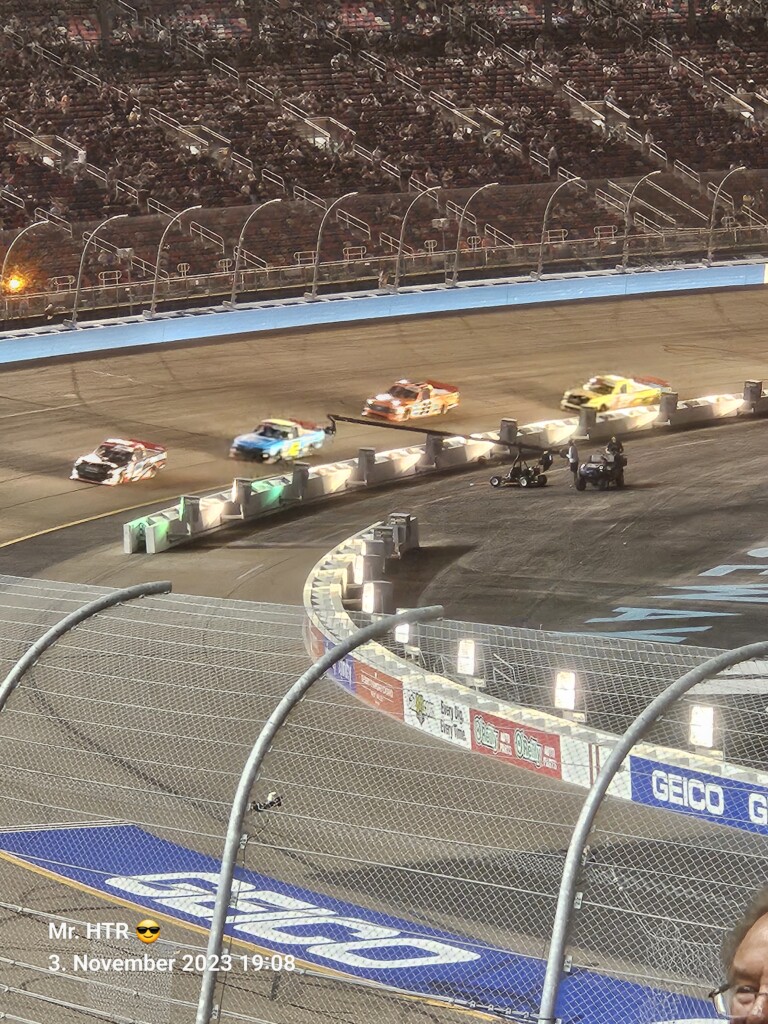 Jetzt gab es eine kleine Pause, die wir genutzt haben um ins Infield zu gehen. Ein Muss, wenn man in Phoenix ist, gelangt man doch so sehr nah an die Autos in den Garagen. Bilder werden gemacht, alles wird aufgesogen. Die Zeit vergeht, auch wir haben wieder Hunger, den wir umgehend stillen. Teuer, aber durchaus genießbar und nötig, brauchen wir doch viel Energie für den Tag. Da die Trucks auf die Bahn geschoben wurden, haben wir uns nach dem Essen auf den Weg zur Tribüne gemacht, das Qualifying der Trucks steht an. Es war spannend, wir freuen uns auf das noch folgende Rennen der Jungs und dem Mädel. Aber erst kommen noch die anderen Klassen, jeweils das Practice der Xfinity und der Bigboys steht vorher an. Beides läuft ohne große Zwischenfälle, auch hier wird die Vorfreude gesteigert auf das, was da in den nächsten zwei Tagen auf uns zukommt.