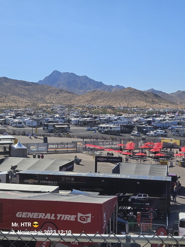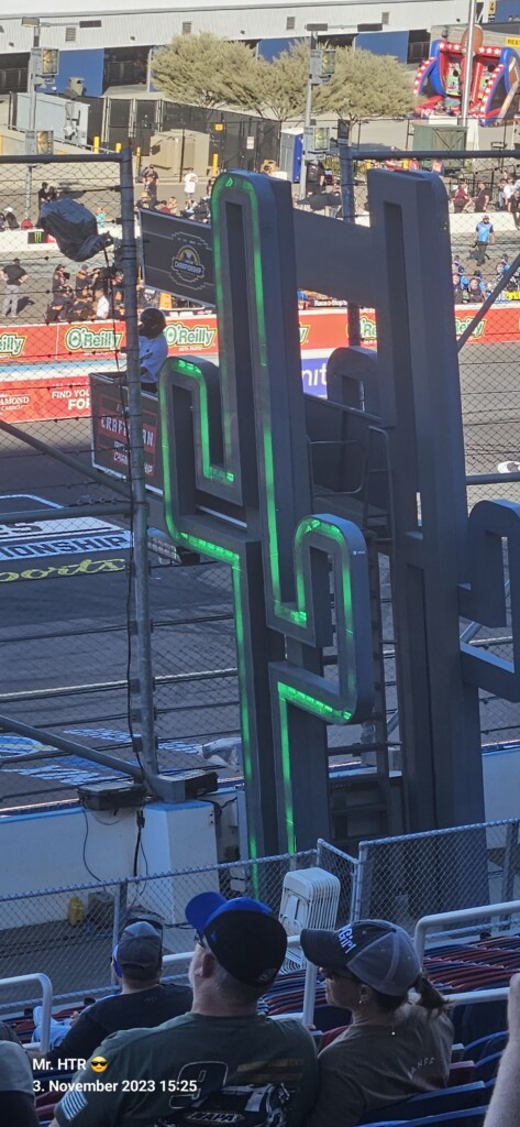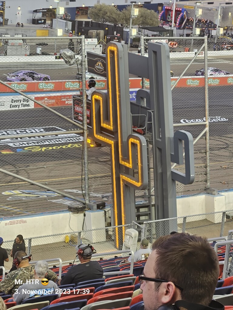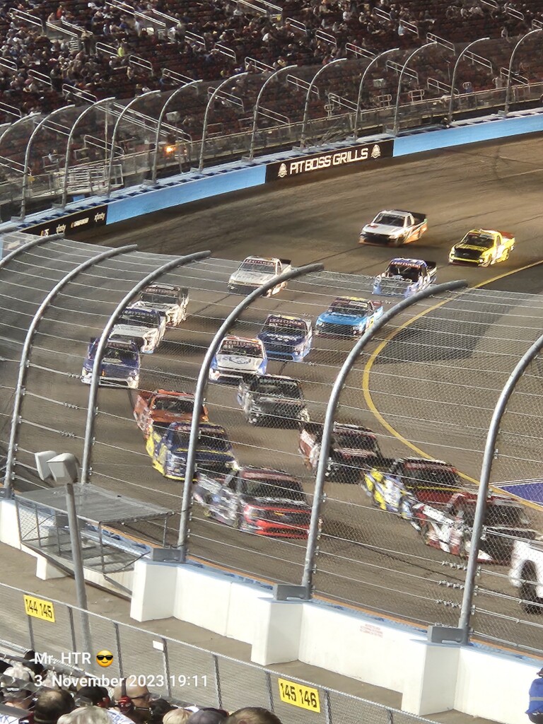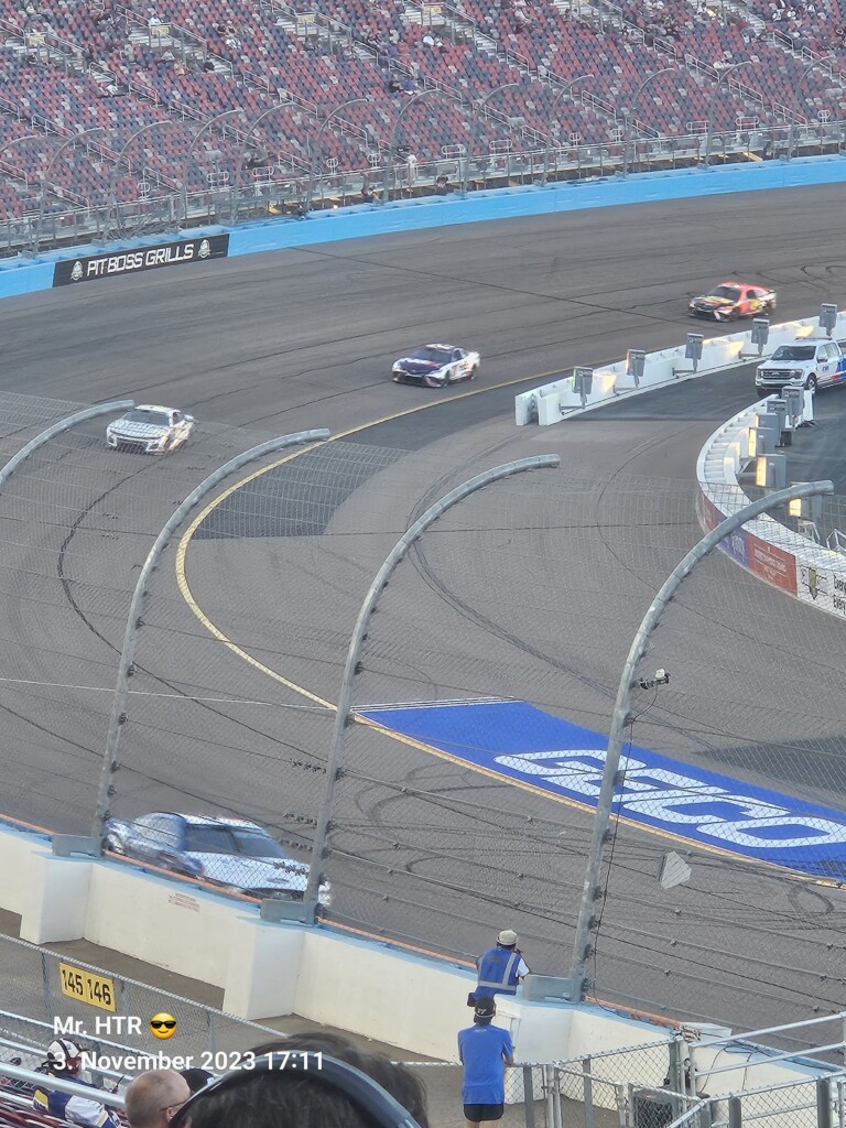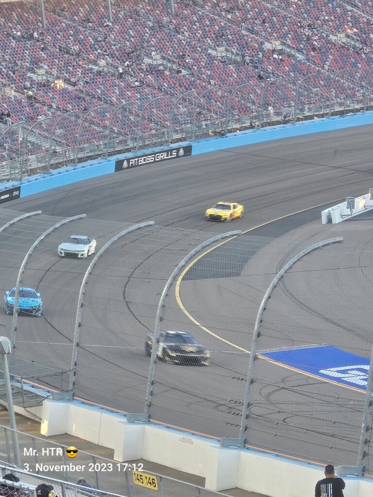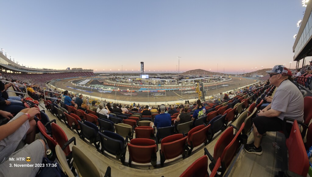 Jetzt gab es eine kleine Pause, die wir genutzt haben um ins Infield zu gehen. Ein Muss, wenn man in Phoenix ist, gelangt man doch so sehr nah an die Autos in den Garagen. Bilder werden gemacht, alles wird aufgesogen. Die Zeit vergeht, auch wir haben wieder Hunger, den wir umgehend stillen. Teuer, aber durchaus genießbar und nötig, brauchen wir doch viel Energie für den Tag. Da die Trucks auf die Bahn geschoben wurden, haben wir uns nach dem Essen auf den Weg zur Tribüne gemacht, das Qualifying der Trucks steht an. Es war spannend, wir freuen uns auf das noch folgende Rennen der Jungs und dem Mädel. Aber erst kommen noch die anderen Klassen, jeweils das Practice der Xfinity und der Bigboys steht vorher an. Beides läuft ohne große Zwischenfälle, auch hier wird die Vorfreude gesteigert auf das, was da in den nächsten zwei Tagen auf uns zukommt.