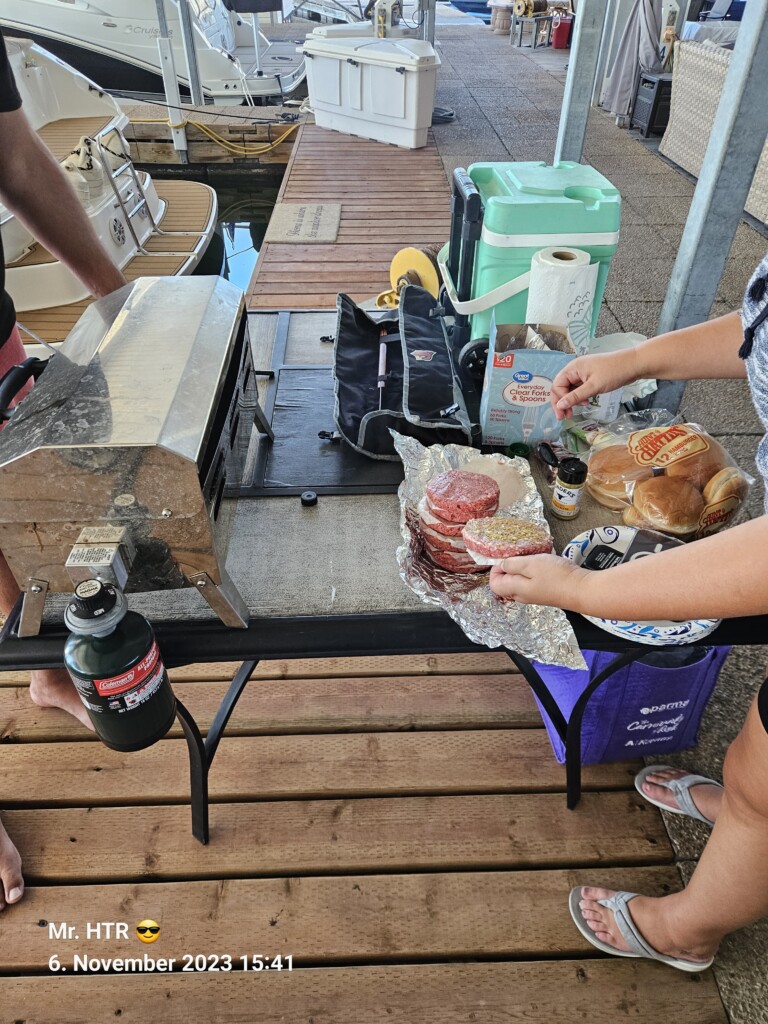 Eric hat seinen Bus ( für 11 Personen ) geholt, somit haben wir auch alle ausreichend Platz. Die Fahrt dauert eine knappe Stunde, geht gefühlt aber schneller vorbei. Am See ( wir waren dort bereits ) hat der Timo ( der war noch nicht da ) etwas gestaunt, wir haben uns aber alle auf das kommende Erlebnis gefreut. Am Boot dann werden die Burger von Eric zubereitet und wir genießen sie, da sie unheimlich lecker sind.