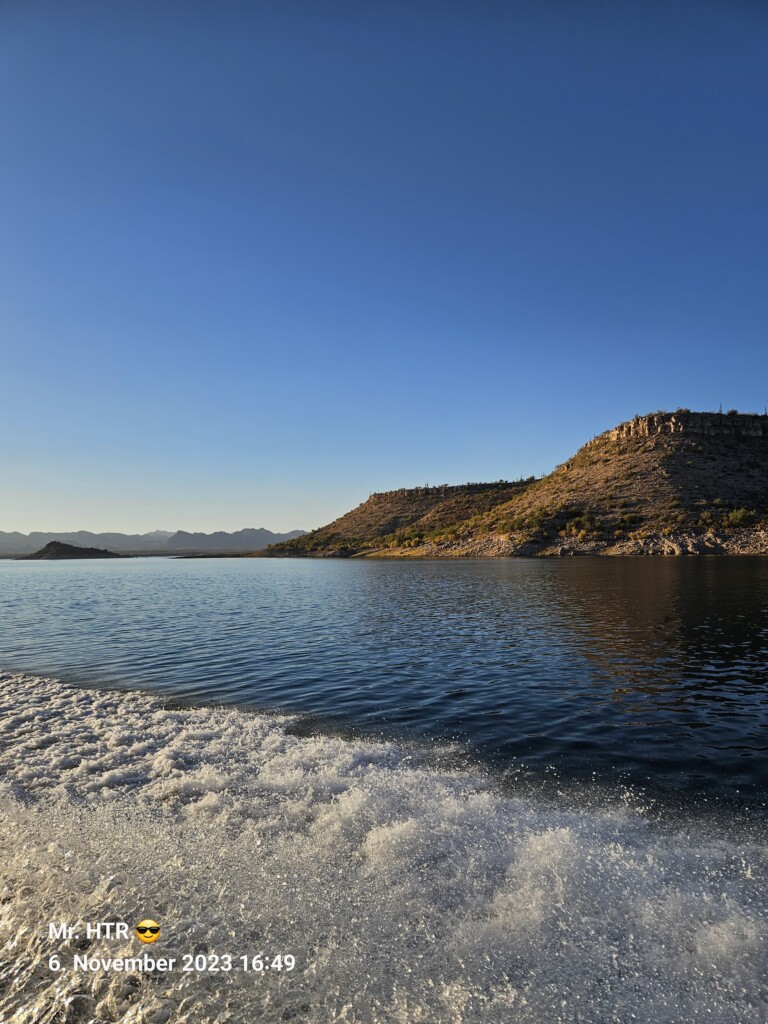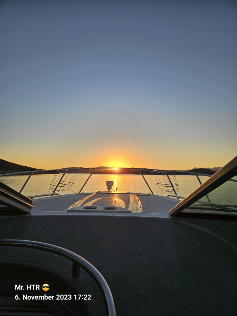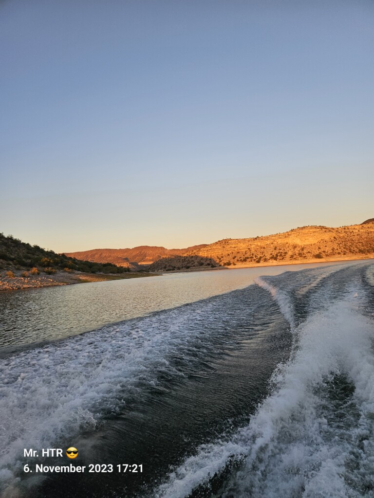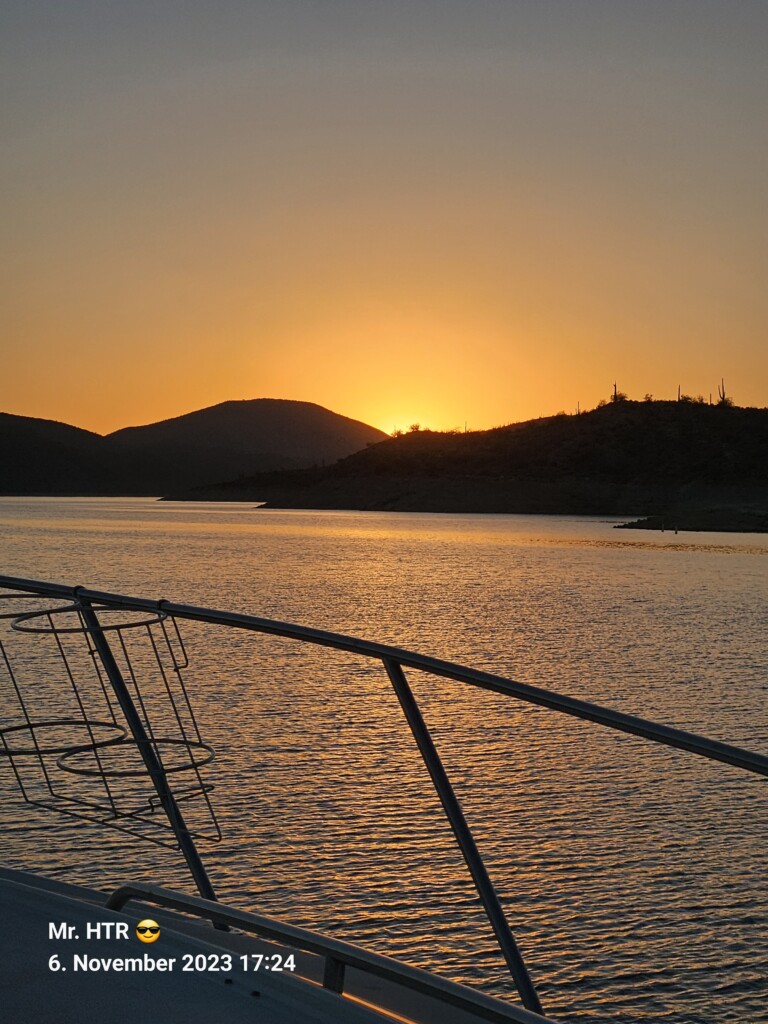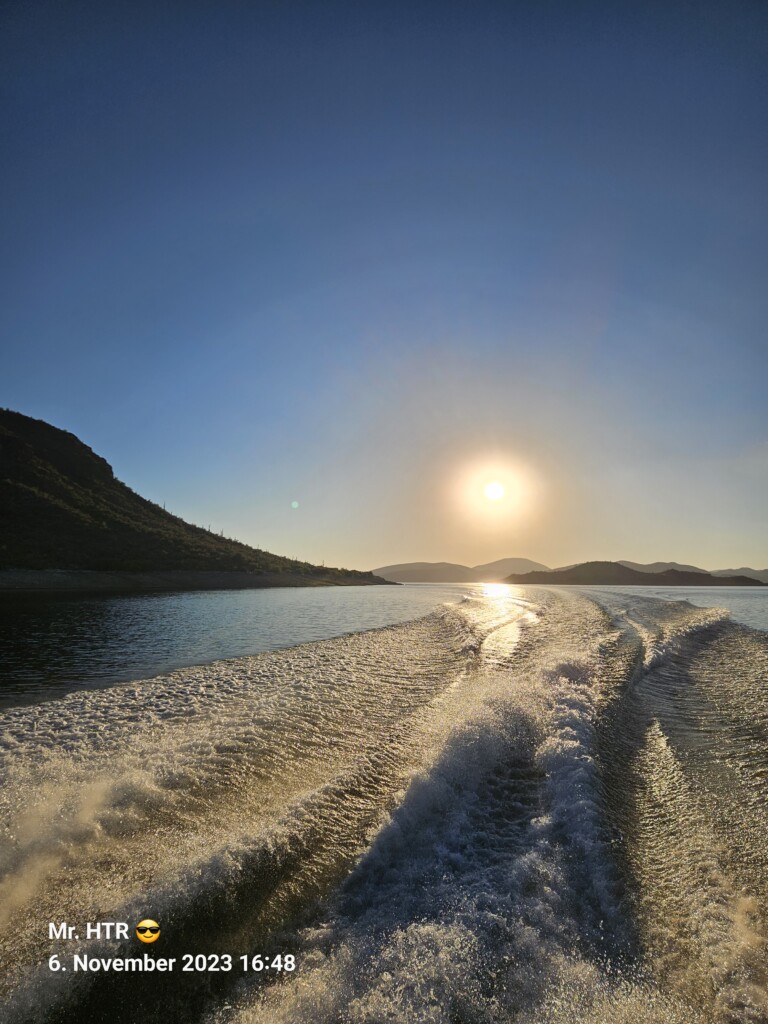 Ruhe, für die Gruppe steht am letzten vollen Tag die Ruhe im Vordergrund. Das ist nach all der Action auch nötig, wir hatten Sound, Trubel und sind viel gelaufen. Da kommt es uns sehr gelegen, dass unsere Gasteltern Dacia und Eric über ein Boot verfügen und wir uns am Mittag auf dem Weg zum Lake Pleasant machen. Dort wollen wir mit dem Boot auf den See ein paar Runden drehen und zum Sonnenuntergang den richtigen Standort aufsuchen.