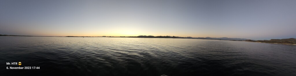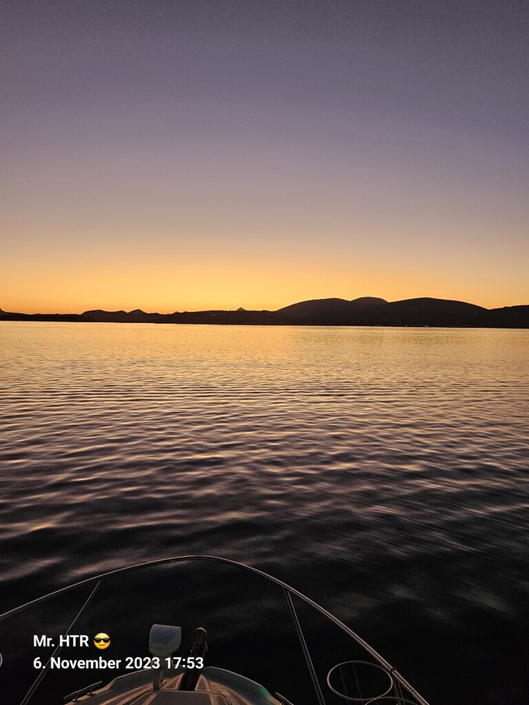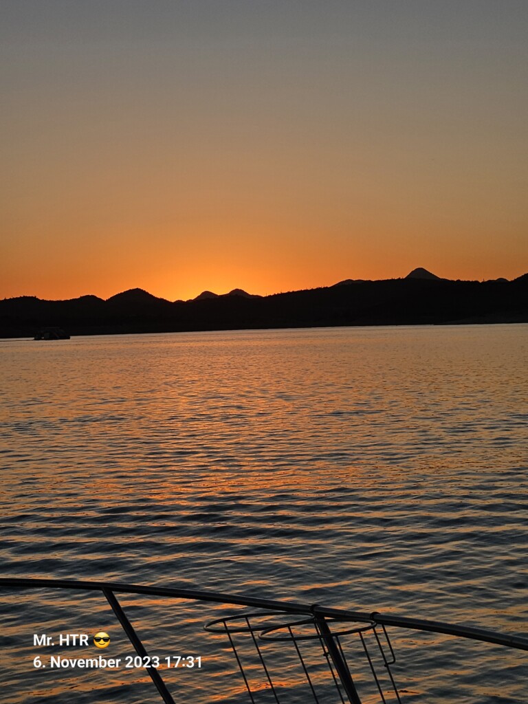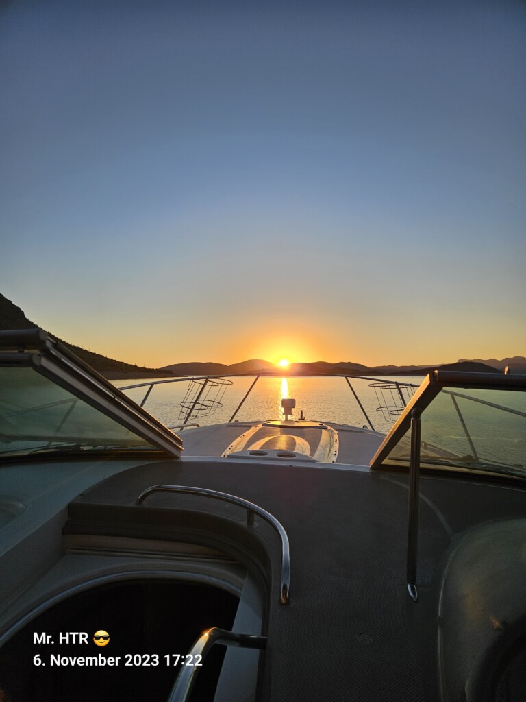 , langsam aus dem Hafenbecken und raus auf den See. Das Boot hat schon ein wenig Power, wir sind mit 30 mph unterwegs. Neben den Burgern haben wir auch ausreichend Bier mitgenommen, also kann die Woche zum Abschluss richtig begossen werden. Das Wetter spielt mit, baden ist aber aufgrund der Wassertemperatur eher nicht angesagt. Aber es gibt viel zu sehen, wir machen ausreichend Bilder, insbesondere als dann langsam die Sonner hinter den Bergen verschwindet. Es ist ein grandioser Eindruck, den all die bunten Farben erzeugen, herrlich ![]()